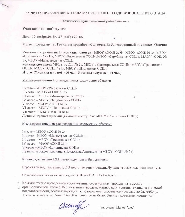 Отчет о финале муниципального этапа. Топкинский район.