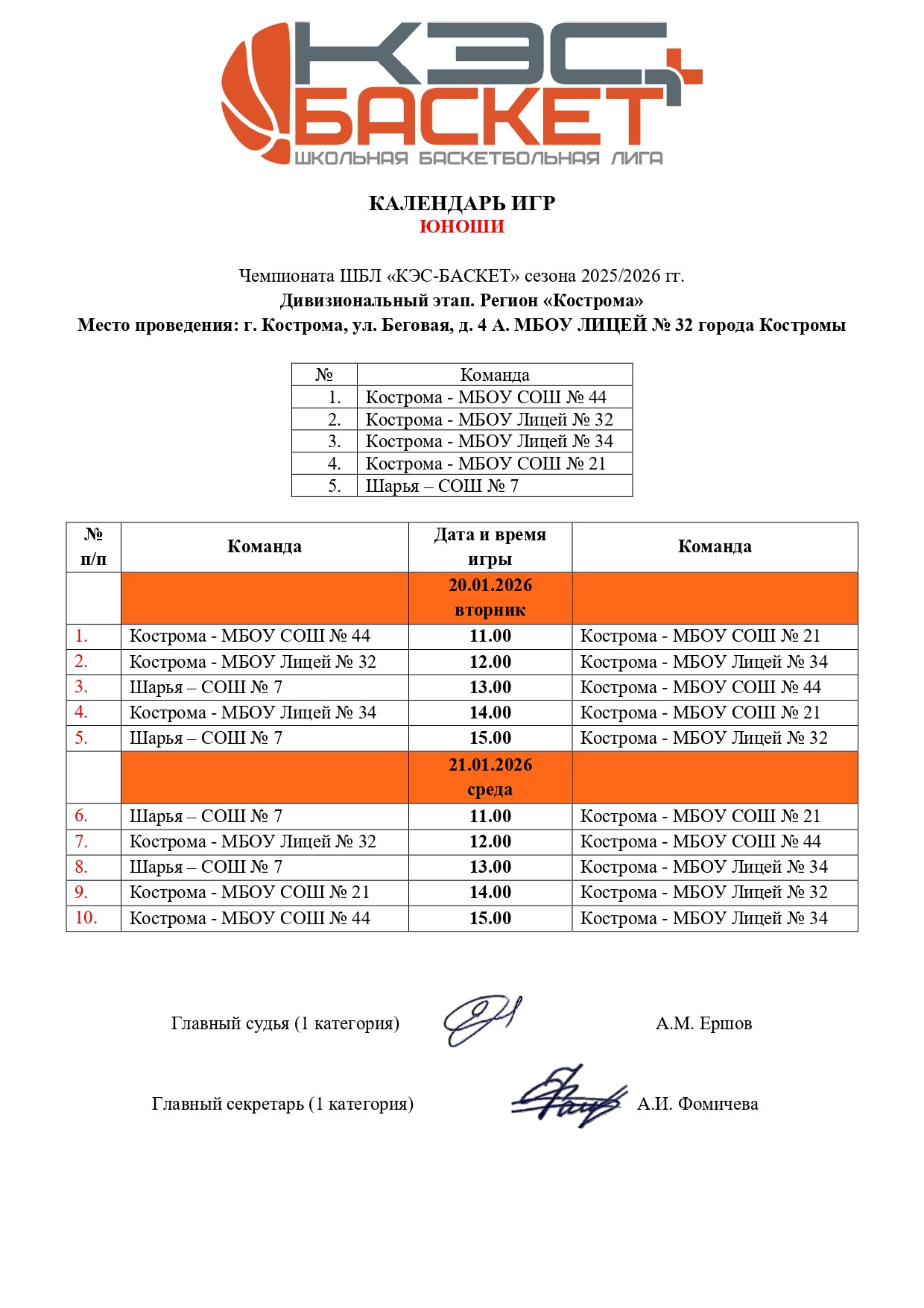 Соревнования пройдут в спортивном зале МОУ г. Костромы Лицей № 32 по адресу: г. Кострома, ул. Беговая, д. 4 А