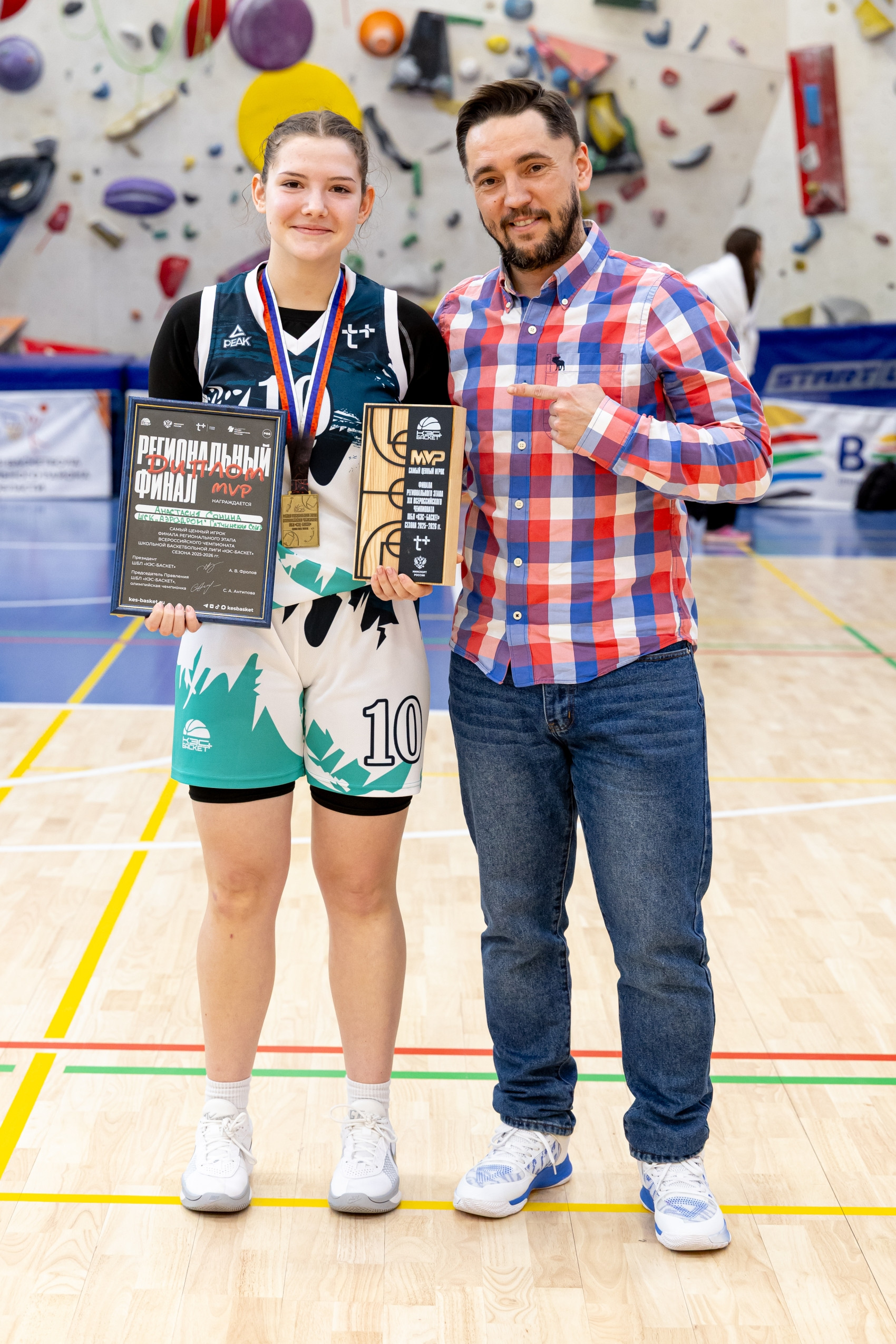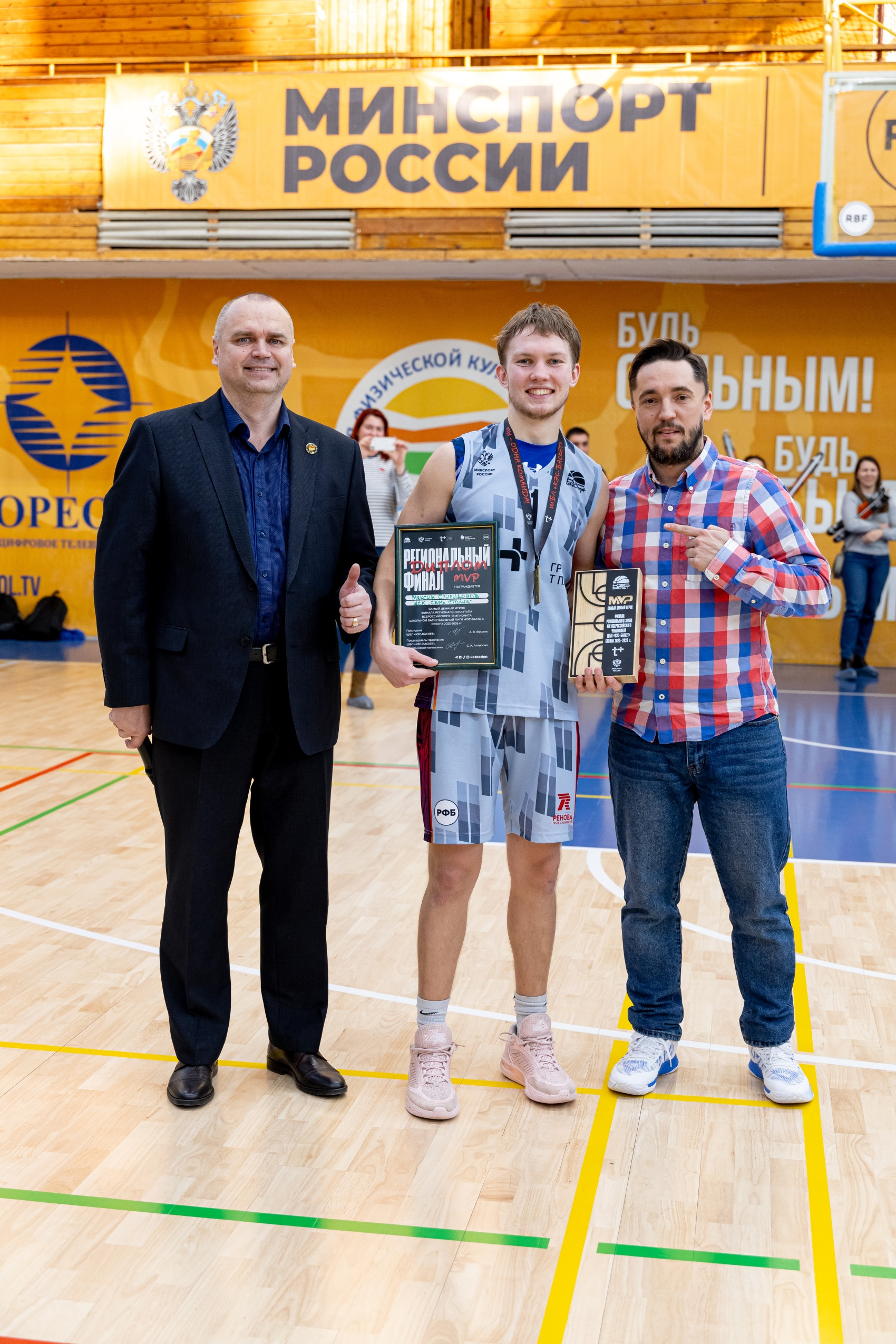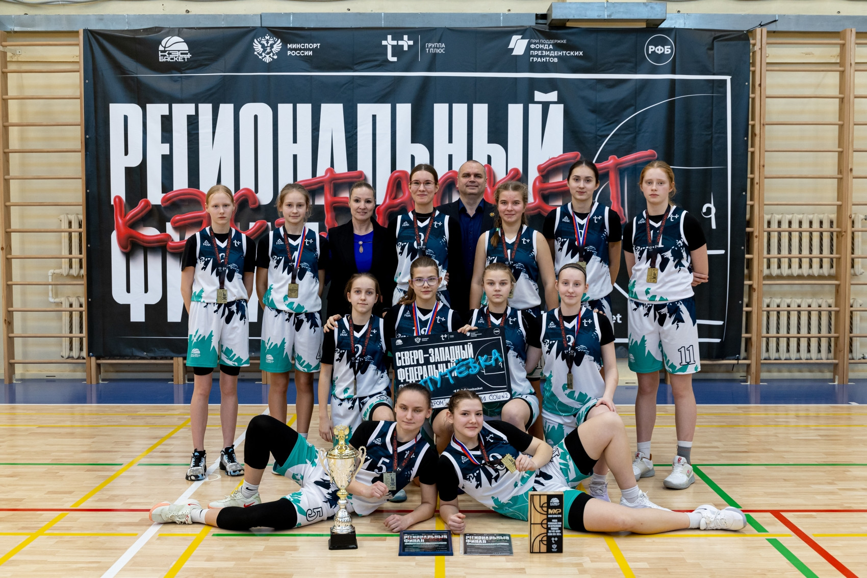MVP финала регионального этапа в Ленинградской области – Анастасия Сонина (Гатчинская СОШ №2, г. Гатчина) 24 очка, 10 подборов, 5 атакующих передач, 3 перехвата и Максим Спиридонов (СОШ «Кудровский ЦО №1», г. Кудрово) 21 очко, 5 атакующих передач, 12 подборов. Эти игроки задали темп игре и во многом определили исход встречи.