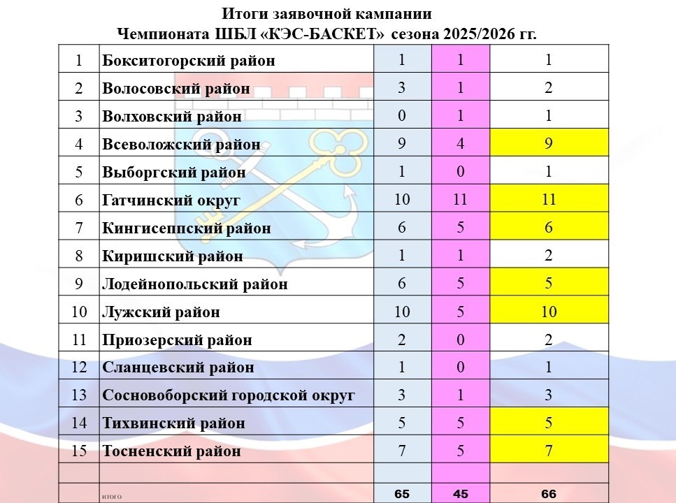 Итоги заявочной кампании ЛЕНИНГРАДСКОЙ ОБЛАСТИ