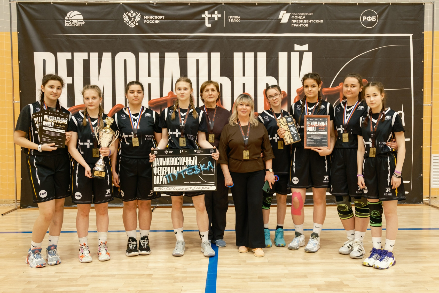 Финальная сирена: девушки МБОУ «СОШ п. Омсукчан», ШСК «Спарта» уверенно завоевали титул победителя ШБЛ «КЭС- БАСКЕТ» завершив встречу с разгромным счетом 88:9.