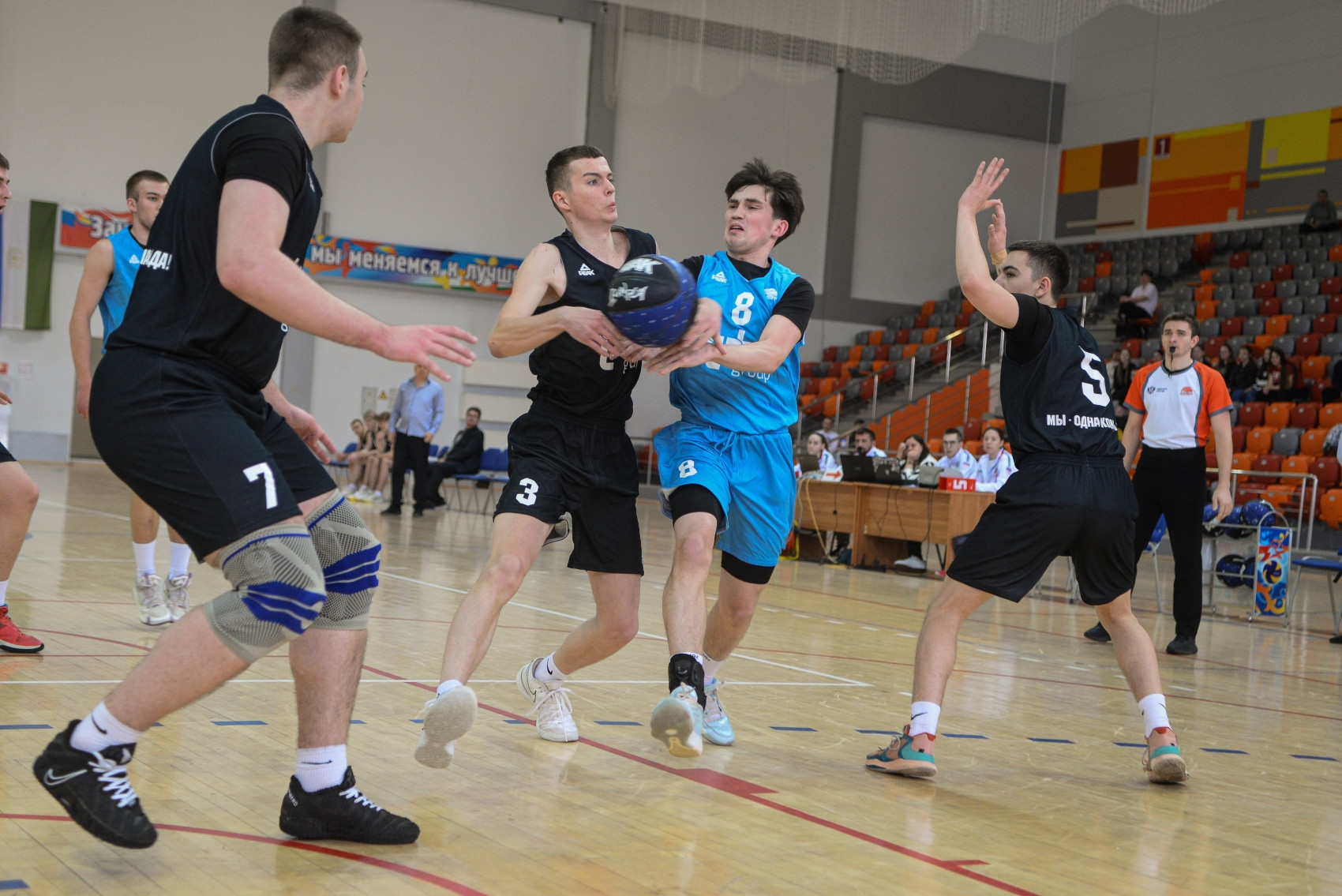 В первом полуфинале команда из Республики Марий Эл на протяжении первой половины встречи оказывала серьёзное сопротивление соперникам из Самарской области, которые к большому перерыву вели всего «+3». Но далее коллектив Никиты Шепелева (Самарская область) был неудержим – итоговая победа со счётом 75:53. В составе новокуйбышевцев Николай Суворов и Сергей Подледнов набрали 29 и 22 очка, соответственно.