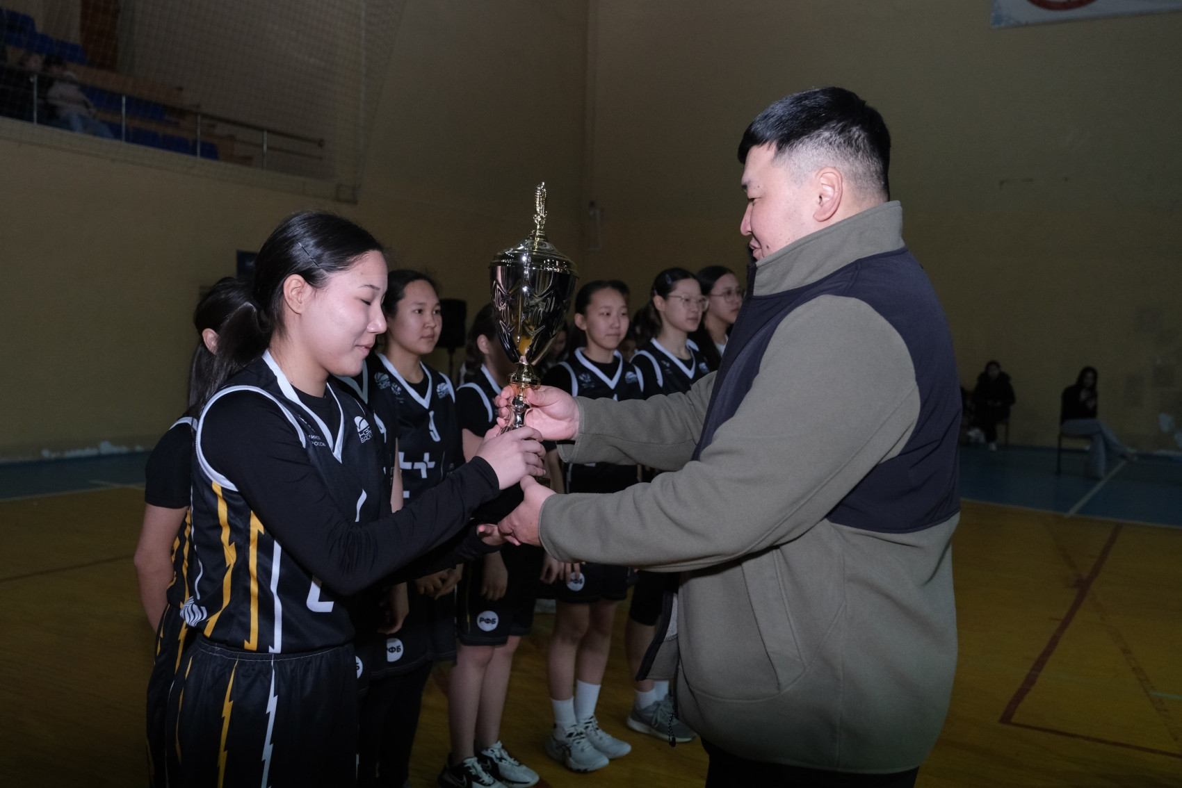 В церемонии награждения приняли участие министр физической культуры и спорта Республики Калмыкия Константин Батыров, вице-президент региональной Федерации баскетбола, представитель Лиги в регионе Дарса Хохлов и менеджер по работе с регионами ШБЛ «КЭС-БАСКЕТ» Александр Папалуца.