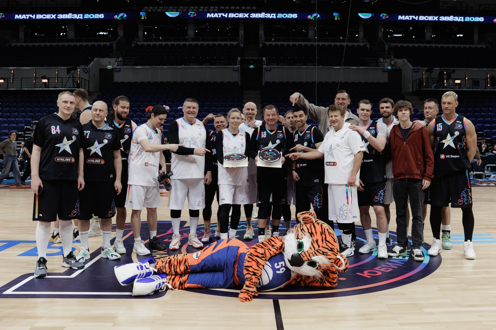Там уже набирал ход Матч друзей Единой Лиги ВТБ, в котором приняли участие прославленные игроки, баскетбольные функционеры и почётные гости. Наши ребята не растерялись в такой солидной компании. Юные баскетболисты активно поддерживали всех участников, а наш маскот, тигр Анатолий, стал настоящим украшением матча!