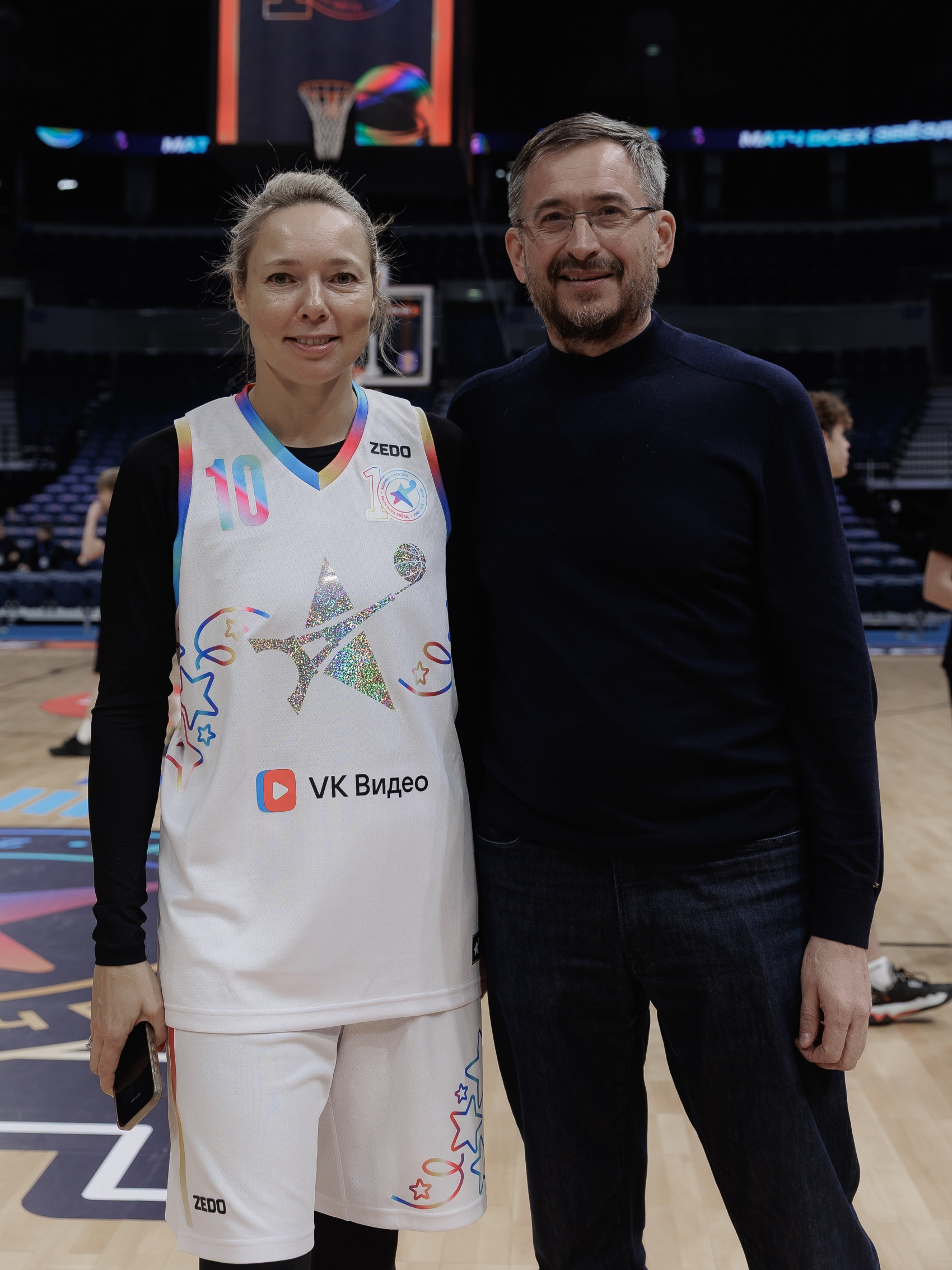 – Матч Друзей набирает обороты, становится лучше с каждым годом. Мы видим здесь интересный микс участников: настоящие звёзды баскетбола, бывшие профессиональные игроки, руководители спортивных лиг, наши спонсоры, бизнесмены, люди из шоу-бизнеса и даже дети. Мы уже много лет сотрудничаем с проектом ШБЛ «КЭС-БАСКЕТ», всегда с большим удовольствием приезжаем в гости к ним, а они – к нам. Мне кажется, у нас получается прекрасное взаимодействие, которое приносит плоды. Было неожиданно и очень приятно получить такой подарок на День рождения от ШБЛ «КЭС-БАСКЕТ». Это стало настоящим сюрпризом! У нас действительно юбилей – 10 лет Матчу звёзд Лиги ВТБ. Многие спрашивали, будет ли торт. Вот, пожалуйста! Начинаем праздновать наш День рождения прямо здесь, на площадке. Это очень круто, большое спасибо нашим партнёрам и гостям из ШБЛ «КЭС-БАСКЕТ»!