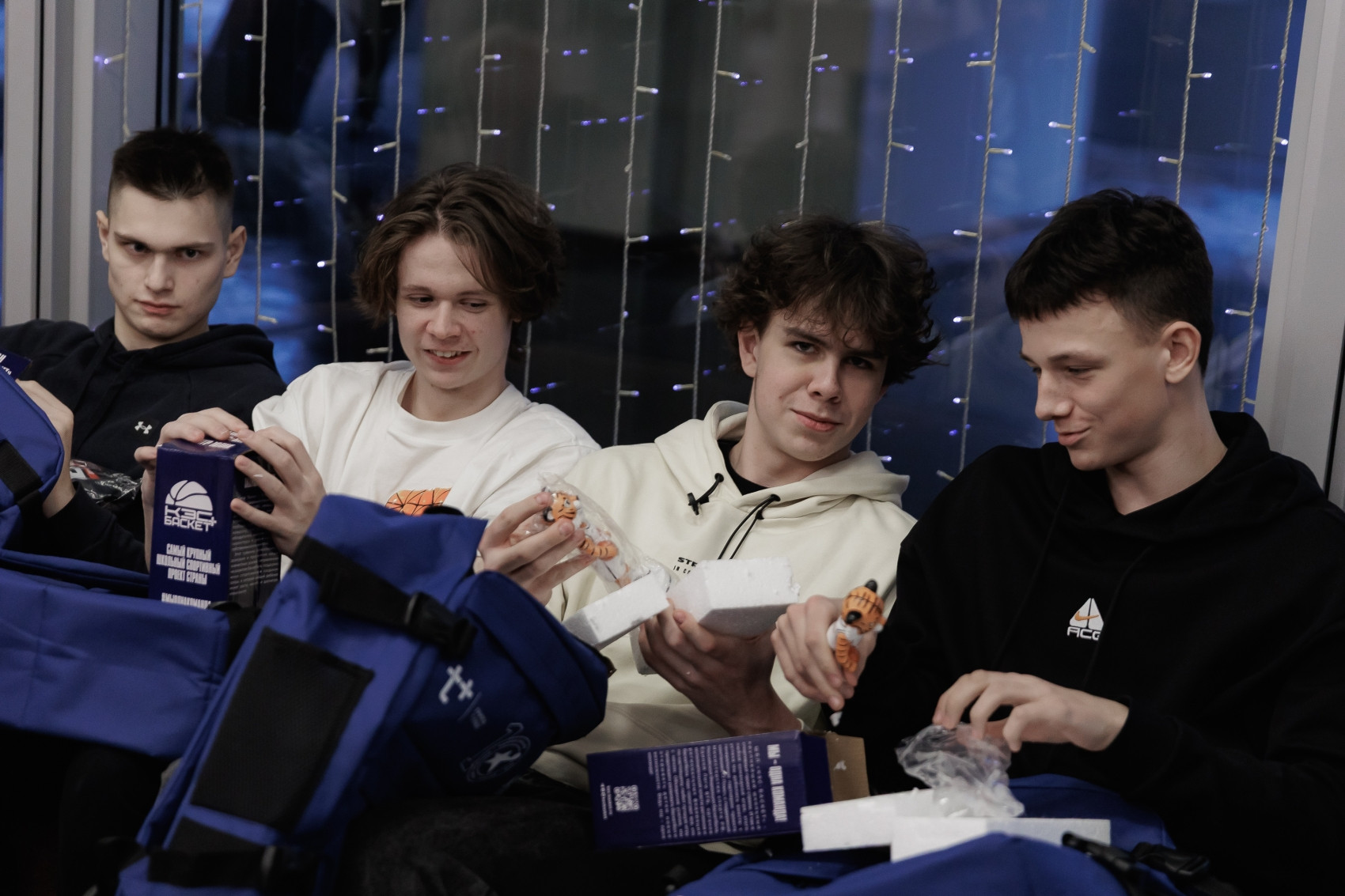 Помимо этого, каждый участник поездки получил из рук Алексея Владимировича стильный мерч: лонгслив, рюкзак с символикой Чемпионата и статуэтку в виде талисмана Лиги – тигра Толика. Почувствовав себя частью дружной баскетбольной семьи «КЭС-БАСКЕТ», школьники немного расслабились и с улыбкой на лице стали рассказывать о себе.