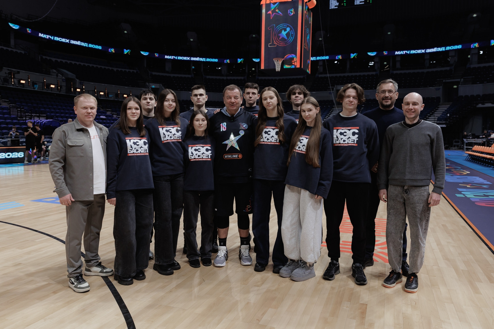 После этого делегация ШБЛ «КЭС-БАСКЕТ» наконец-то отправилась на «Матч Всех Звёзд» Единой Лиги ВТБ. Огромная арена, полные трибуны, яркая шоу-программа и звёздные игроки на паркете – наши школьники оказались в центре настоящего баскетбольного праздника!