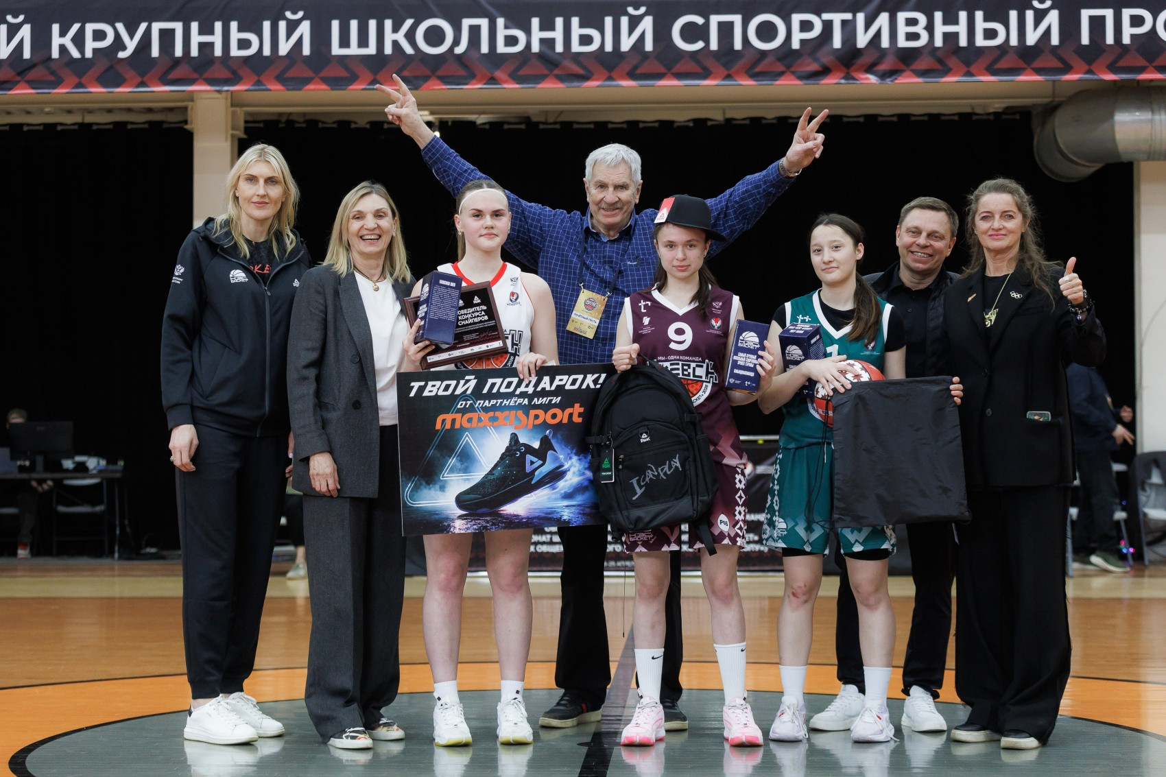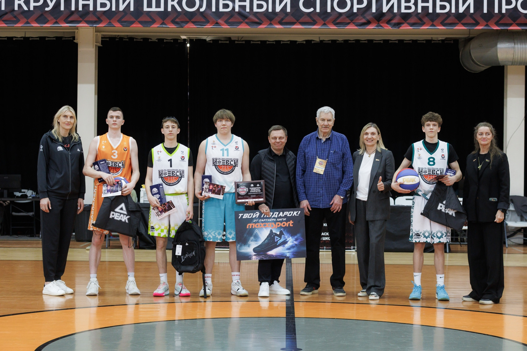 Наградили парней и девчонок олимпийский чемпион Иван Едешко, олимпийская чемпионка, председатель Правления ШБЛ «КЭС-БАСКЕТ» Светлана Антипова, олимпийская чемпионка Ирина Сумникова, бронзовый призёр Олимпийских игр Наталья Водопьянова и представитель компании PEAK в России Андрей Максимов.