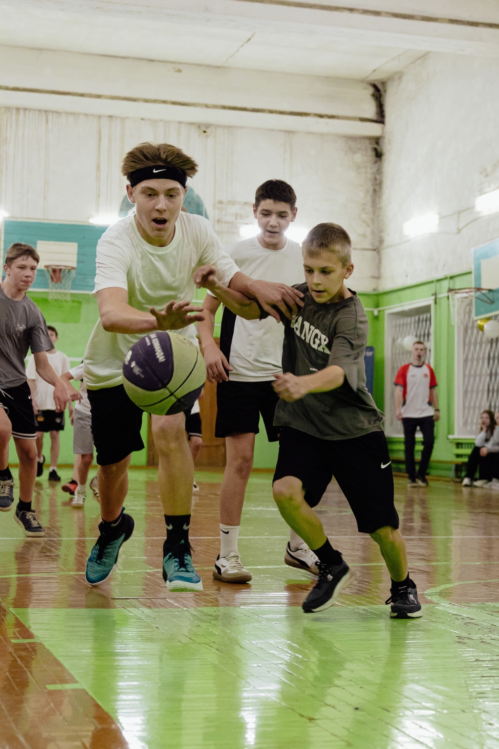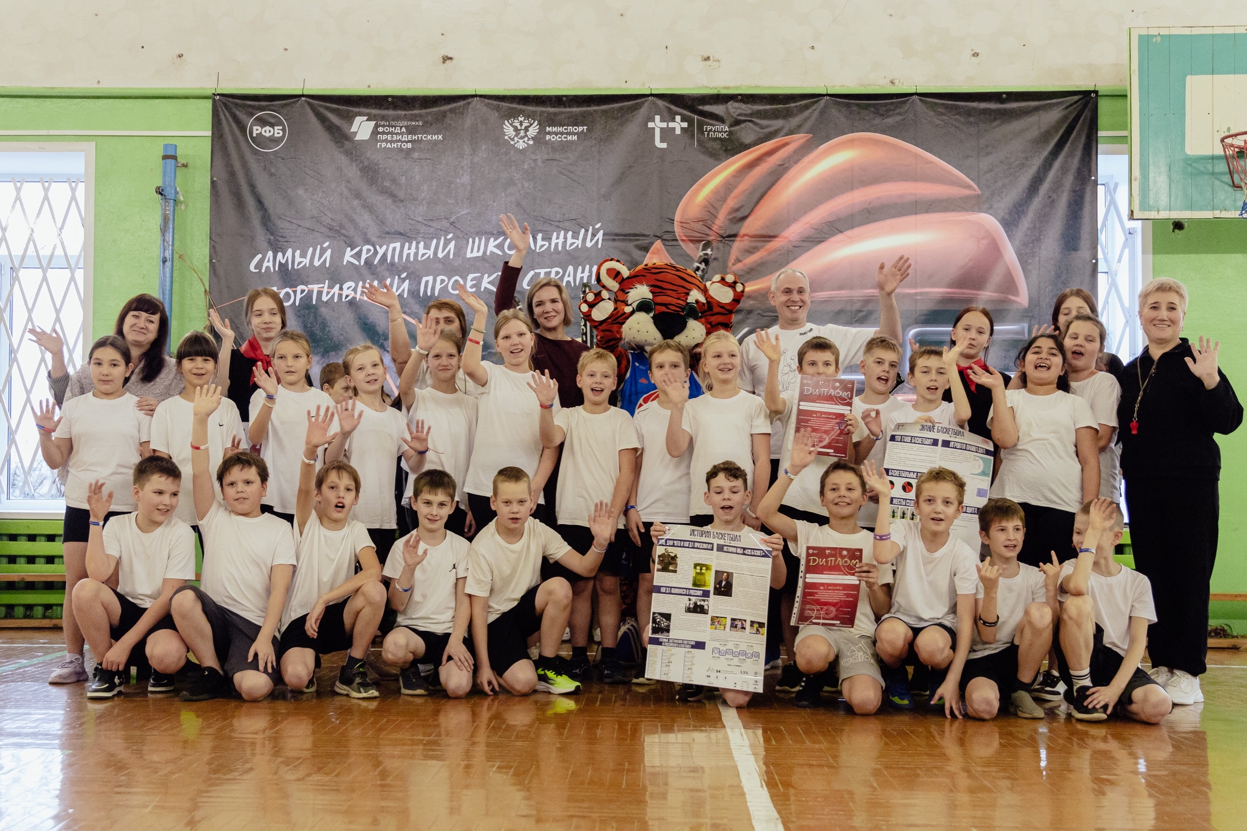 В средней школе с углублённым изучением отдельных предметов мы вместе с организаторами провели финальный день Чемпионата школы: сыграли финальные матчи, выбрали лучших снайперов, приняли участие в баскетбольных эстафетах с самыми маленькими спортсменами.