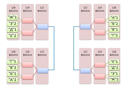 Команды проигравшие свои игры на 1/8 и 1/4 финальной стадии выбывают из турнира.