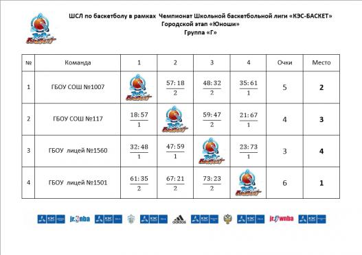 Итоговое положение команд юношей в группе А. Дальнейшую борьбу за медали в четвертьфинале продолжат команды ГБОУ СОШ № 1007 и ГБОУ лицей № 1501.