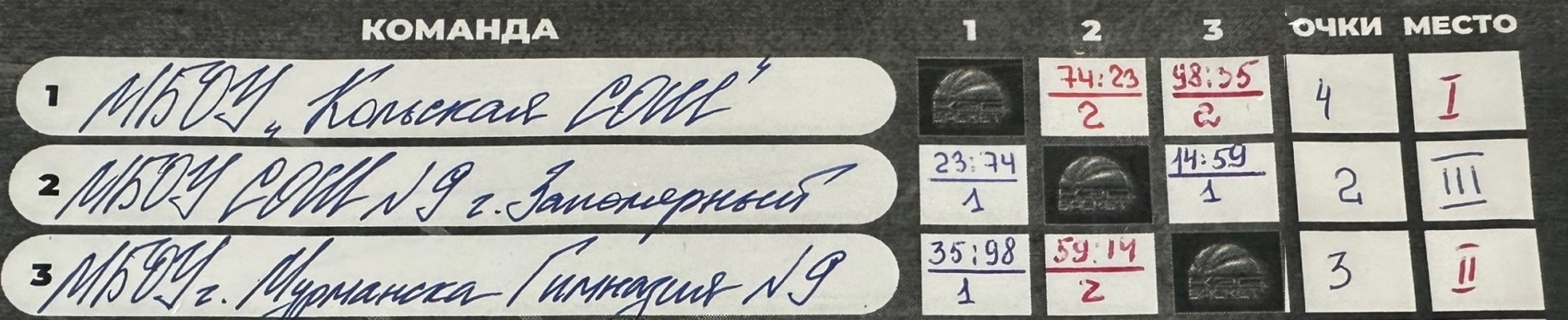 1 место — МБОУ «Кольская СОШ», г. Кола