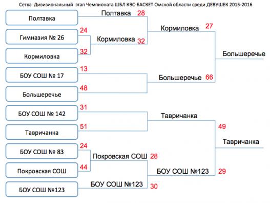Составлена сетка плей офф 10 лучших команд Девушек Дивизионального этапа
