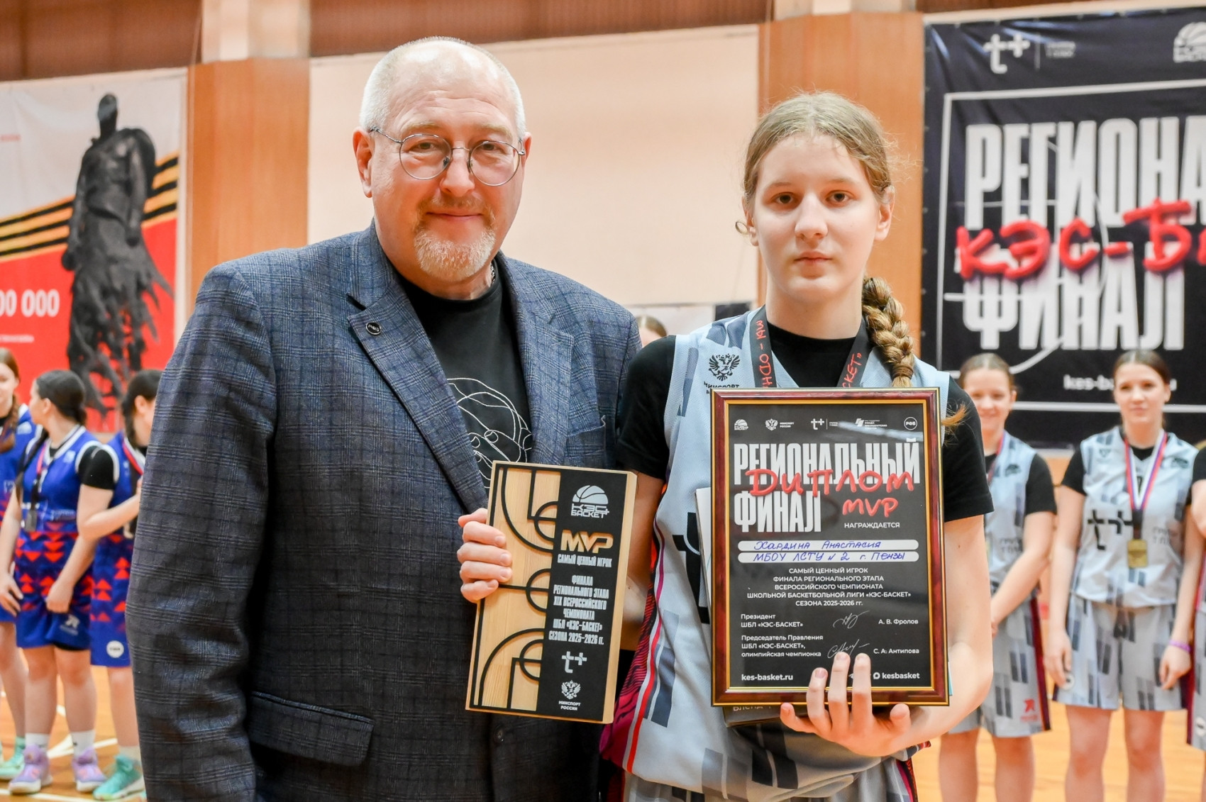 На церемонии награждения присутствовали заместитель министра физической культуры и спорта Пензенской области Дмитрий Вячеславович Брюханов, главный специалист министерства образования Пензенской области Сергей Евгеньевич Красильников, председатель комитета по спорту, физической культуре и молодёжной политике города Пензы Владимир Евгеньевич Агапов, директор филиала «Пензенский» ПАО «Т Плюс» Игорь Викторович Кузьмичёв, региональный менеджер Чемпионата ШБЛ «КЭС-Баскет» Татьяна Владимировна Аршинова и главный судья Чемпионата ШБЛ «КЭС-Баскет» в Пензенской области Ольга Викторовна Комиссарова.