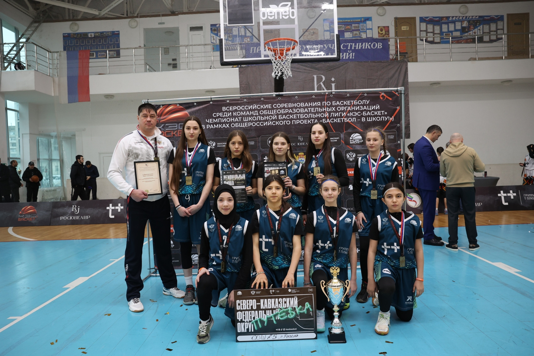 Триумфальный «золотой дубль» Кизляра: баскетболисты СОШ №5 спустя годы серебряных наград взбираются на верхнюю ступень пьедестала и забирают обе путевки на финал СКФО.