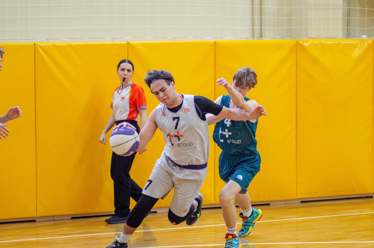 Дмитрий Гаспарян – главная звезда Петергофской гимназии собрал двух противников вокруг себя в углу и каким-то образом умудрился заработать пробивной фол на два броска в безвыходный ситуации. Оба точно в цель, счет – 36:36. Меньше трех минут до конца игры.