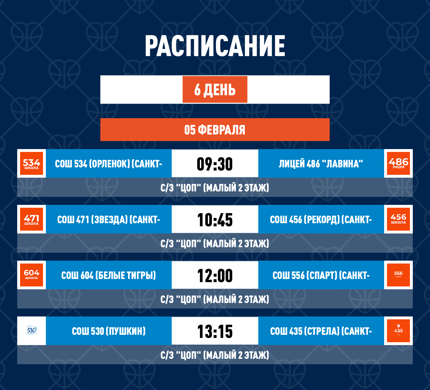 Обратим внимание на первую игру: школа №534 vs лицей №486 (wild card). Первое и второе место Выборгского района попали путем рандома в одну группу. Будет интересно!