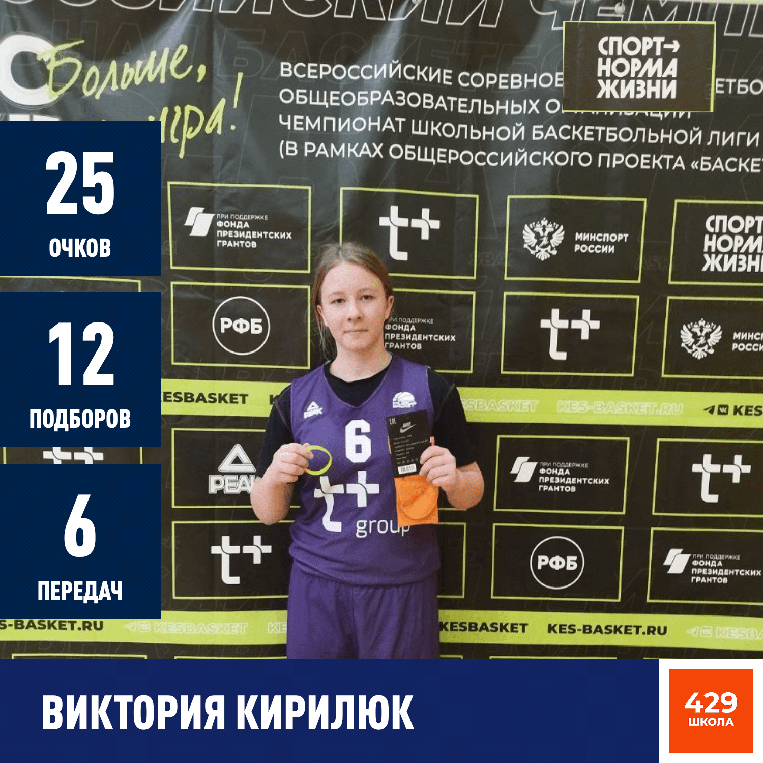 Виктория Кирилюк (Школа № 429 им. Героя РФ М.Ю. Малофеева)— Ghetto Basket MVP игры! Одна забила столько же сколько и вся команда соперниц.