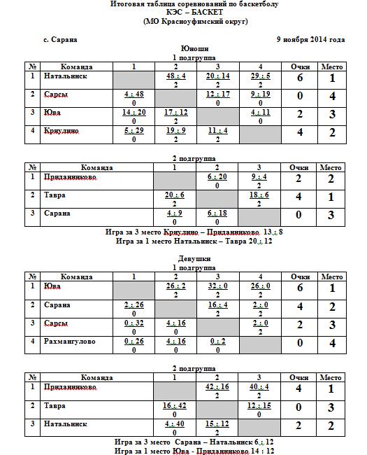 Финал Красноуфимского района среди команд юношей и девушек. Дивизион «Запад». 9 ноября 2014 года.