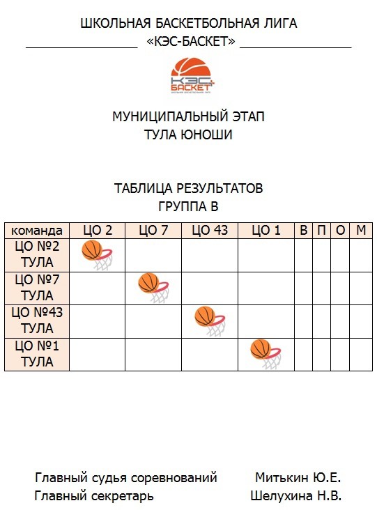 Расписание игр. Тула. Юноши. Группа В