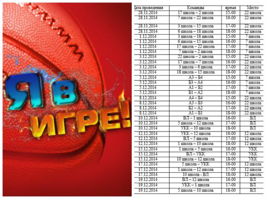 Расписание игр юношей г. Воткинск