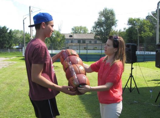 В Тереньгульском районе в соревнованиях участвовали всего три школы, но все они получили мячи на зависть учителям физкультуры из других школ. Вручение состоялось на центральной площади Тереньги в день работы областного агитпоезда.