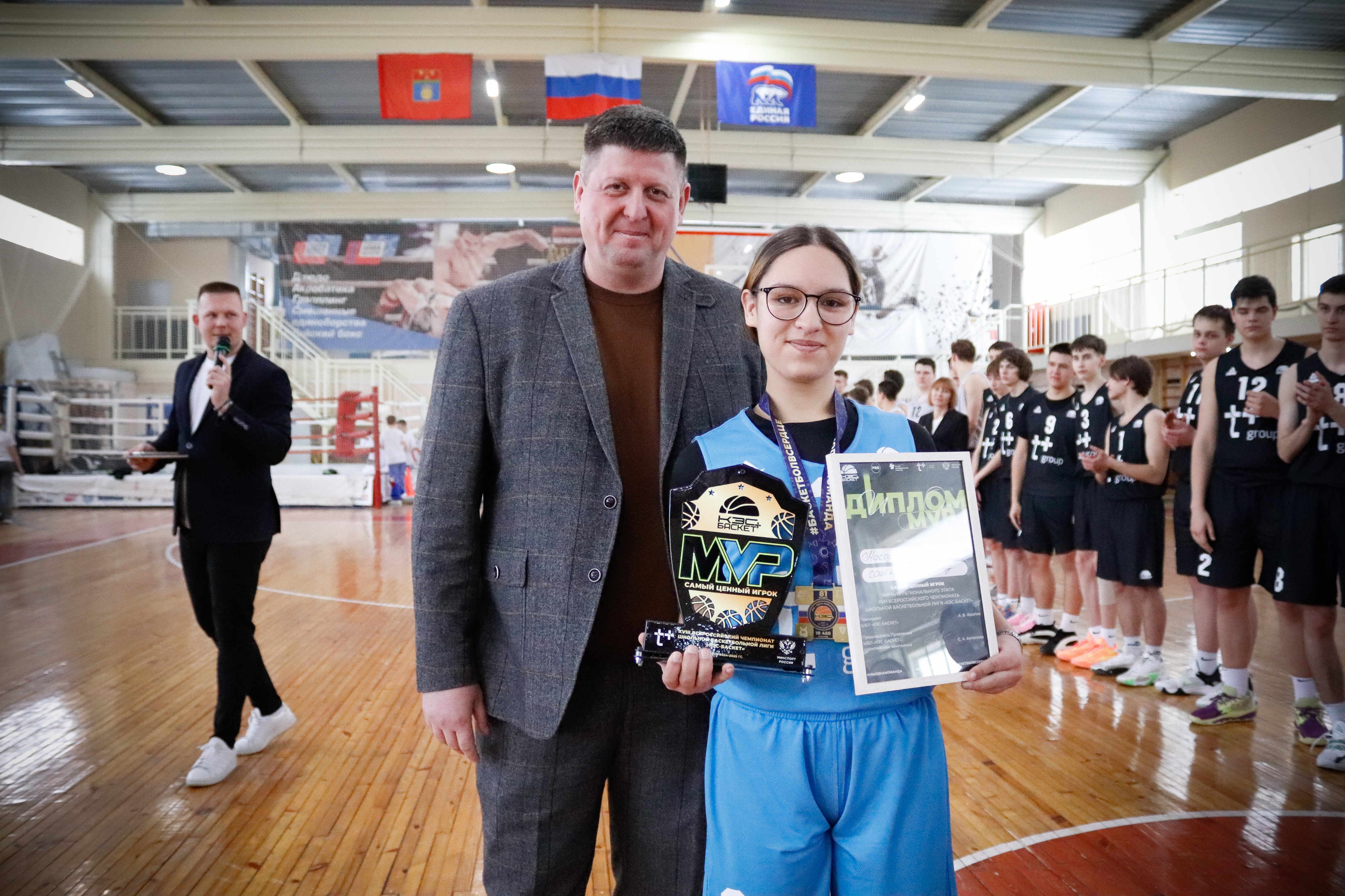 На торжественной церемонии награждения присутствовали директор по развитию ШБЛ «КЭС-БАСКЕТ» Михаил Пермяков, председатель комитета по физической культуре и спорту администрации Волгограда Илья Горбунов, президент Федерации баскетбола Волгоградской области, участник СВО Александр Воропаев и директор МБУ СШОР № 2 Юрий Матвеев.