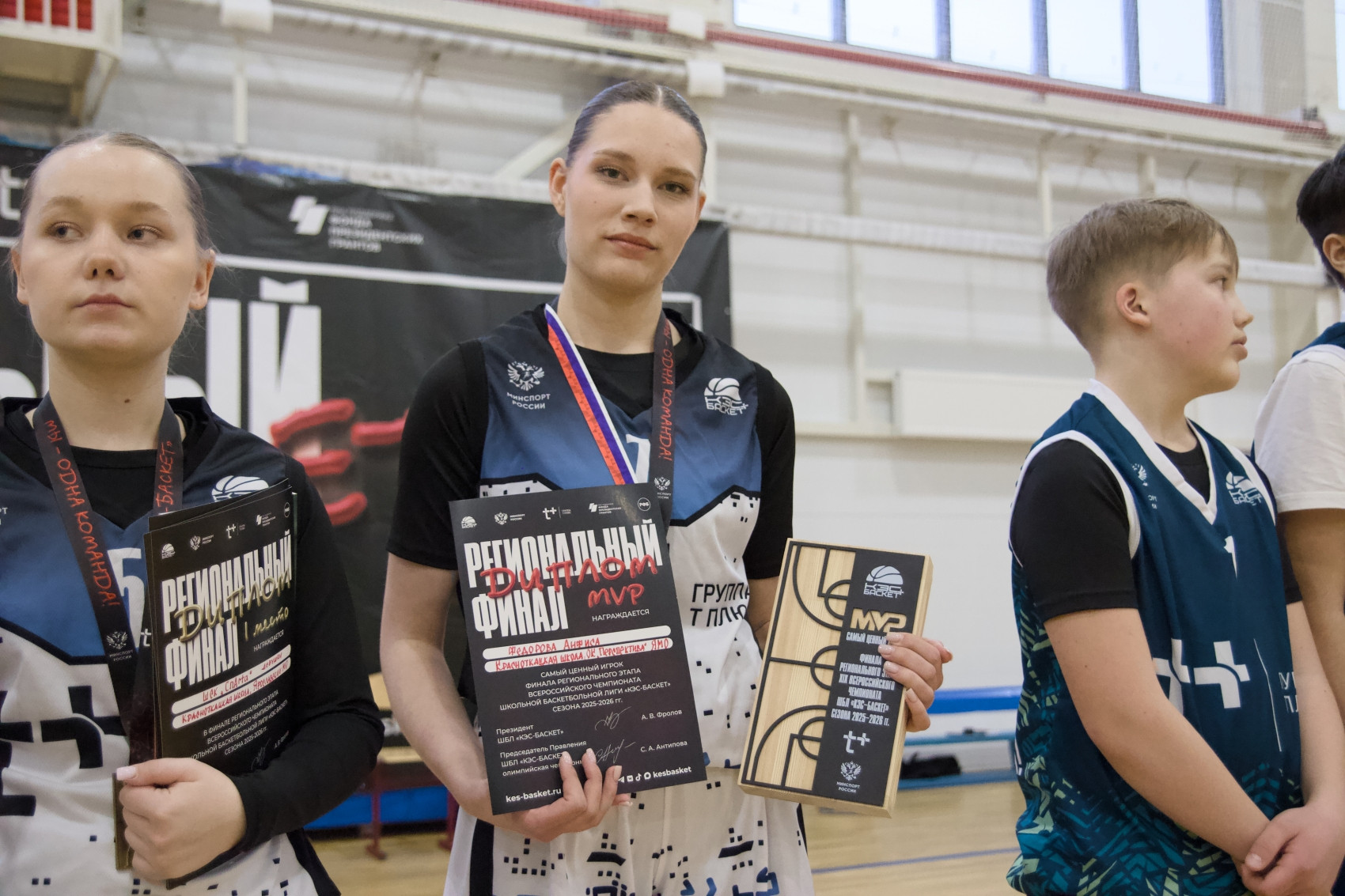 Победителей и призеров регионального финала в этом году пришли поздравить почетные гости – директор государственного образовательного автономного учреждения дополнительного образования Ярославской области «Центр детей и юношества» Елена Дубовик, главный судья Чемпионата Школьной баскетбольной лиги «КЭС-БАСКЕТ» в Ярославской области, старший инструктор-методист спортивной школы олимпийского резерва № 2 города Ярославля Николай Косарев, старший судья дивизиона «Рыбинск» Чемпионата Школьной баскетбольной лиги «КЭС-БАСКЕТ» в Ярославской области, педагог-организатор муниципального учреждения дополнительного образования «Центр детского и юношеского творчества «Молодые таланты» Евгений Федоров, старший судья дивизиона «Семибратово» Чемпионата Школьной баскетбольной лиги «КЭС-БАСКЕТ» в Ярославской области, старший тренер-преподаватель детско-юношеской спортивной школы №2 Ростовского муниципального округа Олег Исхаков.